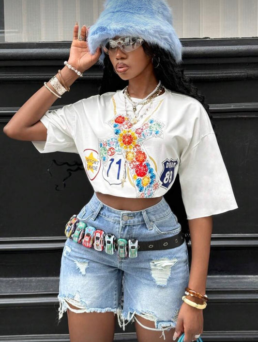 “Denim Denim” White 2 Piece Set