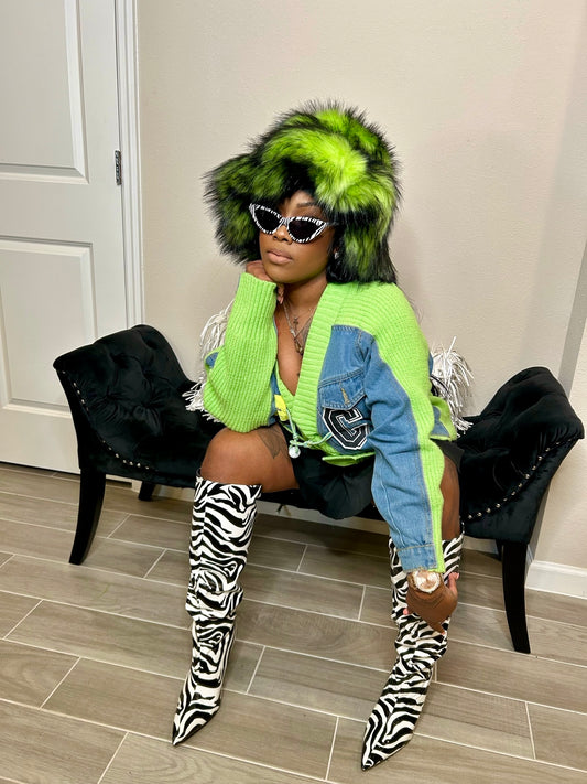 “Limelight Lit” Green Fur Hat