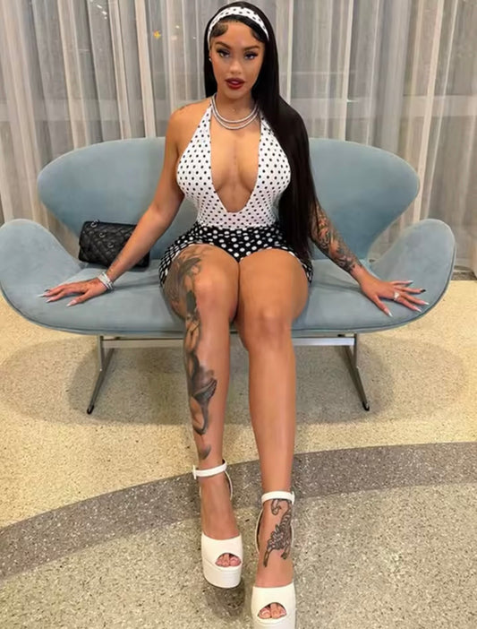 “Polka Rhem” Black Romper