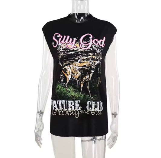 “Silly” Black Graphic Top