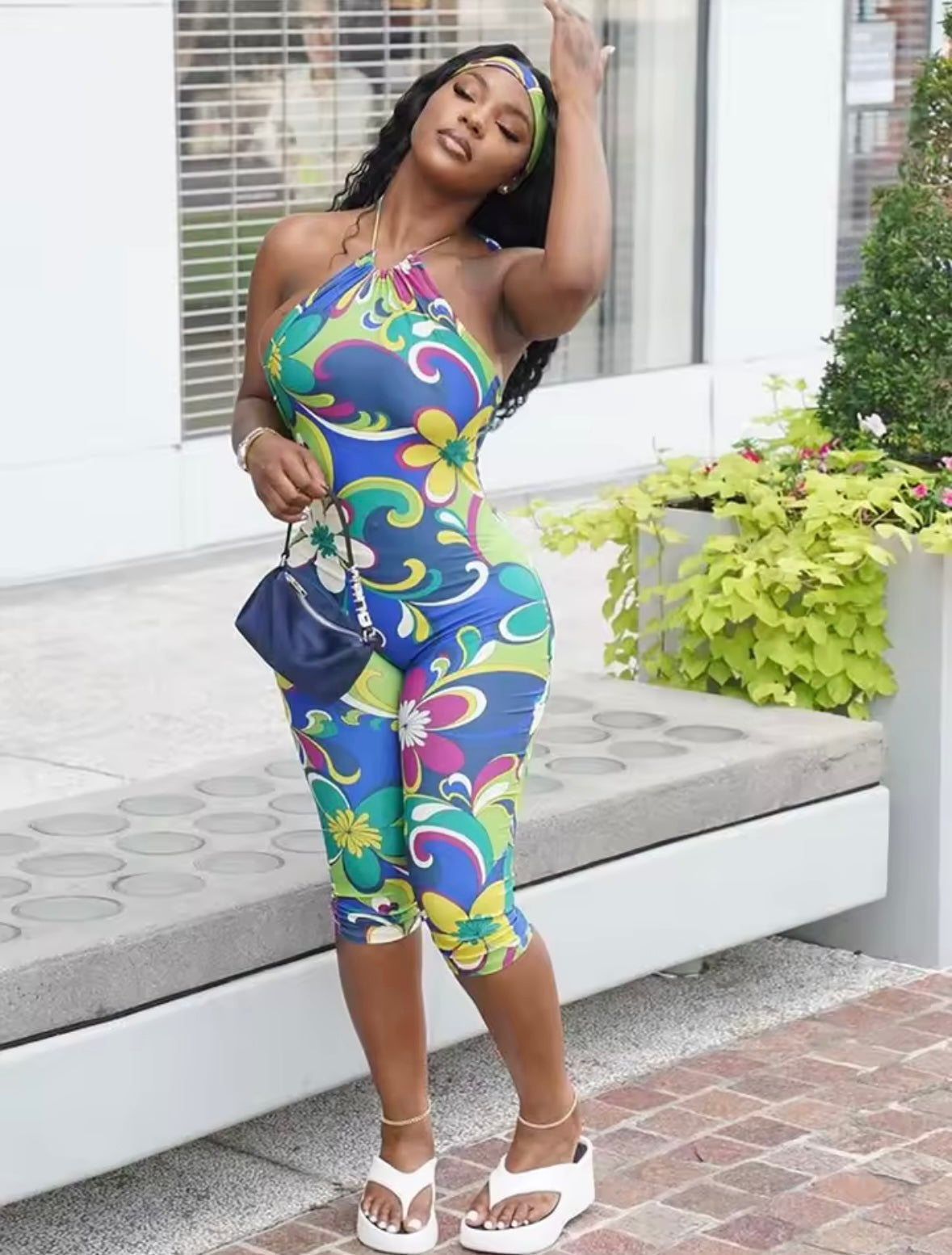 “Flower Bomb” Blue Romper